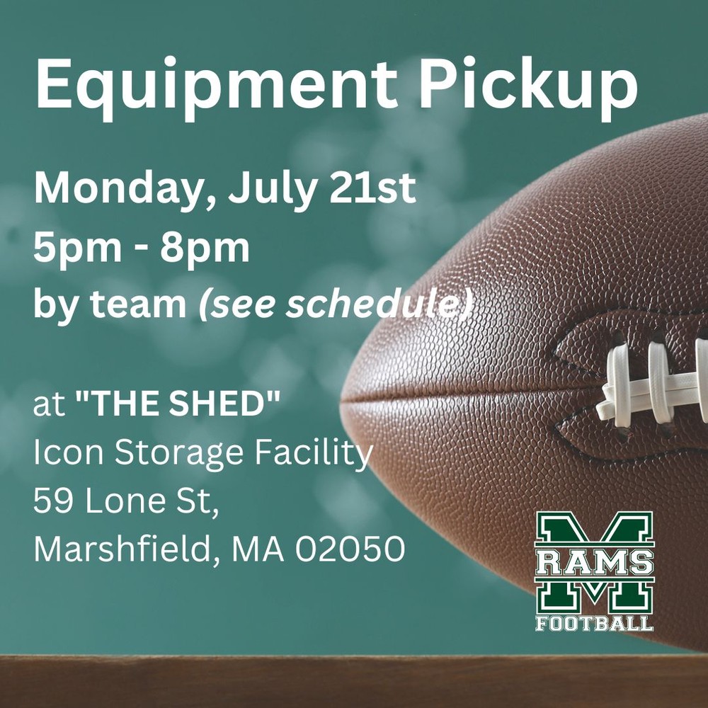 Equipment Pick up is scheduled for this coming Monday, July 21st at "The Shed". Check your email for all of the important details you will need to get your equipment! Every player must be fitted for their equipment.